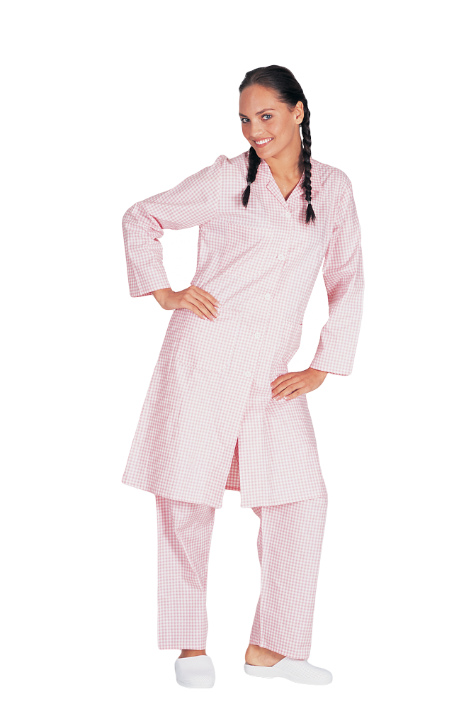 MEVSİMLİK %100 PAMUK ZEFİR KADIN ÖNLÜK-PANTOLON 1702140gr Pembe-Beyaz Kareli %100 Gabardin kumaştan Kadın Önlük. Düğmeli, spatsız. Alt iki tarafta üsten takma