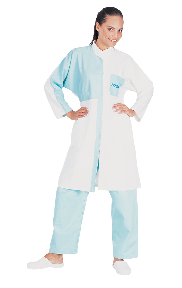 245gr Beyaz-Turkuaz 65Polester %35 Viskon Alpaka kumaştan Kadın Önlük - Beyaz Alpaka Pantolon. Önlük