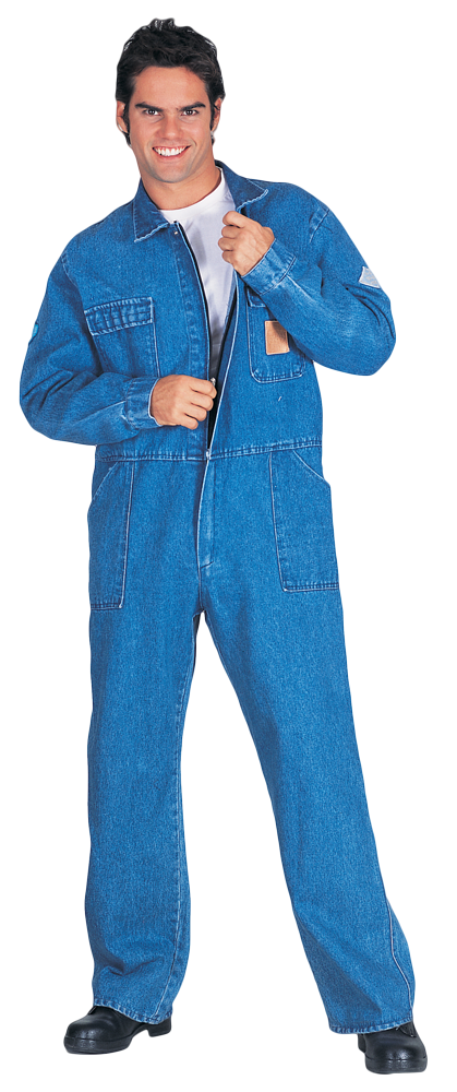 14,5 Ons %100 Pamuk Bluejean kumaştan Kapalı Tulum. Yakalı, önü spatlı fermuarlı, üst göğüs üstten kapaklı 2 cepli, altta üstten takma 2 cepli, arkada kapaksız , toplam 5 cepli tulum. Yanda mezura cebi vardır. Beli arkadan lastiklidir. Gerekli yerlerde ponteriz dikişleri bulunmaktadır.