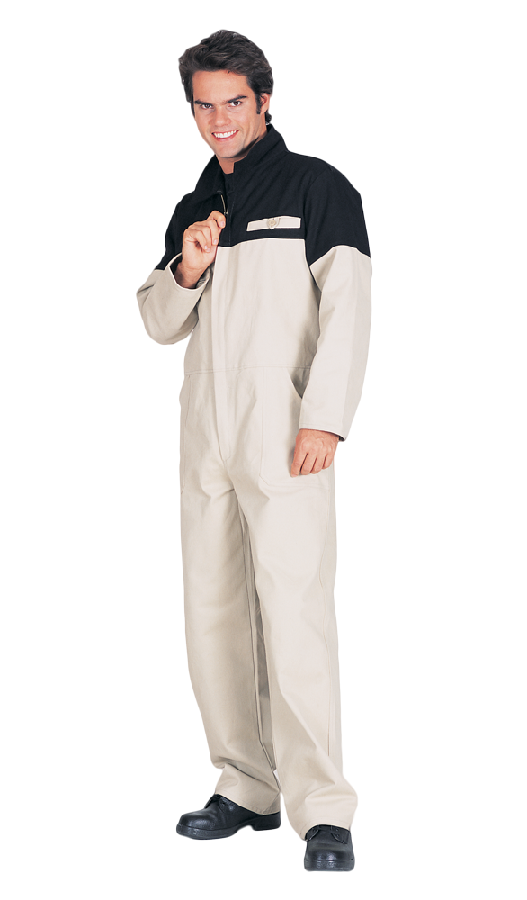 400gr Bej Kışlık %100 Pamuk Gabardin kumaştan İşçi Kapalı Tulum. Yakalı, önü spatlı fermuarlı, üst göğüs siyah kumaştan robalı , sol göğüs bej kumaştan dilli,düğmeli, gizli cepli, altta üstten takma 2 cepli, arkada kapaksız , toplam 4 cepli tulum. Yanda mezura cebi vardır. Beli arkadan lastiklidir. Gerekli yerlerde ponteriz dikişleri bulunmaktadır.