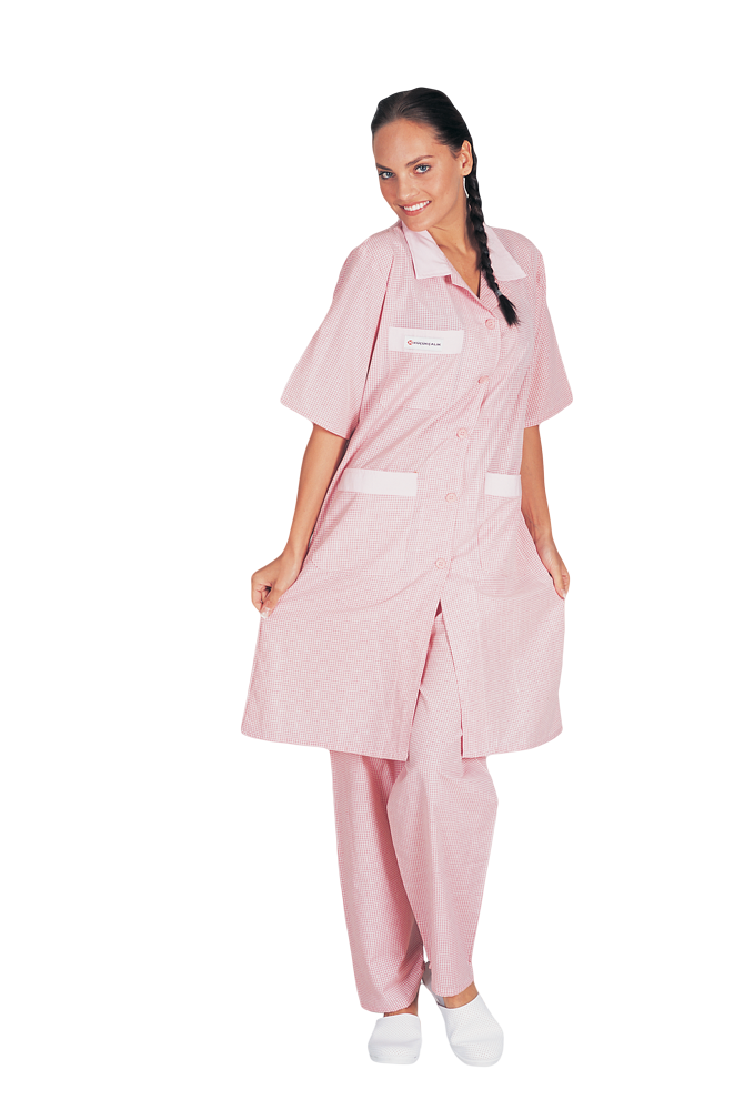 245gr Pembe-Beyaz Kareli %100 Pamuk Gabardin kumaştan Önlük-Pantalon. Önü spatsız düğmelidir. Yaka ve