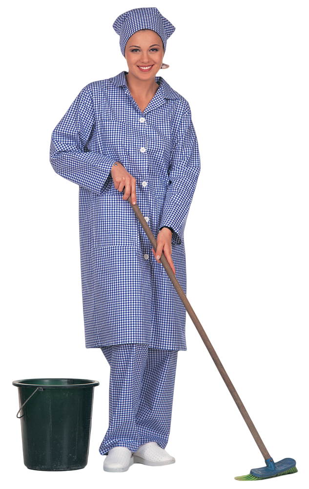 140gr Laciver-Beyaz Kareli %100 Gabardin kumaştan Kadın Önlük. Düğmeli, spatsız. Üst ve Alt iki tarafta üsten