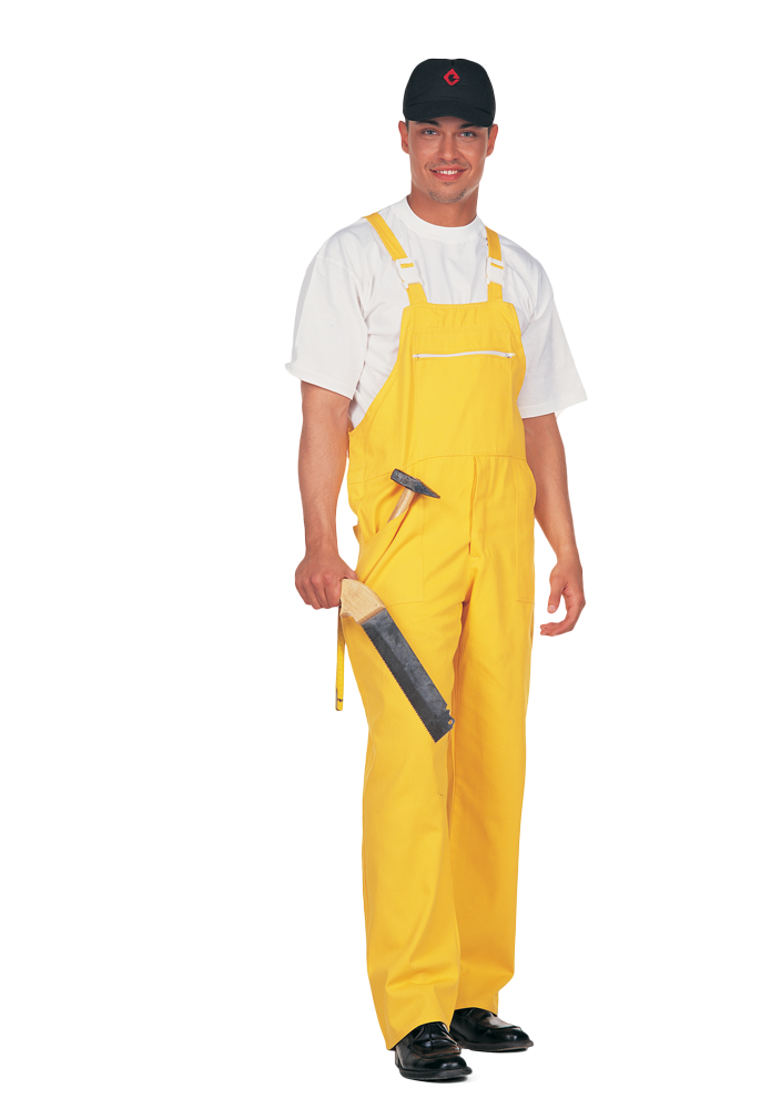 245gr Sarı %65 Pamuk / % 35 Polyester Gabardin kumaştan Bahçıvan Tulum. Önü, fermuarlı cepli. Yandan