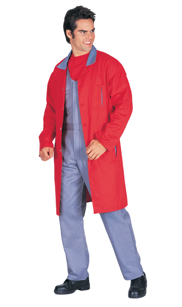 245gr Kırmızı %65 Pamuk / % 35 Polyester Gabardin kumaştan Önlük- Gri Kolsuz Tulum. Önlük Kırmızı